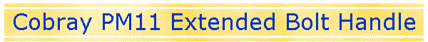Cobray PM11, PM11 Carbine Extended Bolt Handle Increases Performance, Eases Cocking, Improvers Sight Picture. Easily Installs on Your Cobray PM11 Pistols and Carbines. Cost is 12.00 plus shipping Cobray PM11/NINE Carbine 349.99 30rd Magazine for PM11's 29.99